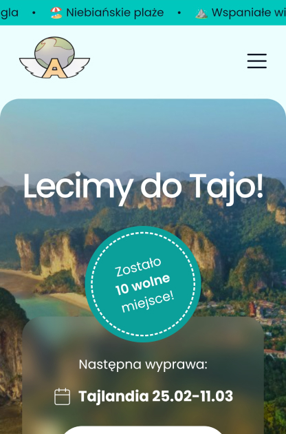 • Layout: storytellingowy, prowadzący użytkownika przez świat Anioła – od inspiracji po konkretne wyjazdy