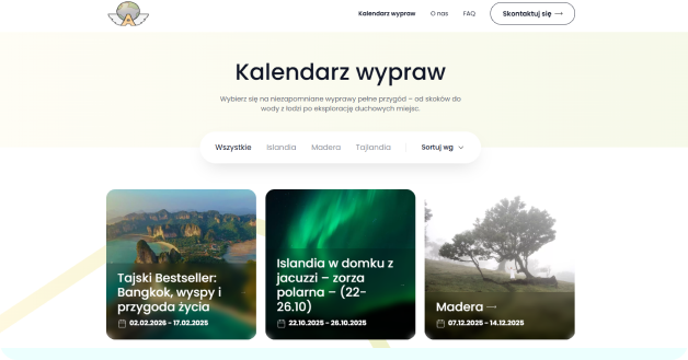 Celem nowej strony było połączenie estetyki lifestyle’owego brandu z funkcjonalnością serwisu, który realnie ułatwia planowanie i rezerwację wyjazdów.Stworzyliśmy przestrzeń, która oddaje ducha podróży – nowoczesną, lekką i przyjazną dla użytkownika. Efektem jest spójna, szybka i elastyczna witryna, która buduje zaufanie, inspiruje do odkrywania świata i wspiera sprzedaż ofert turystycznych.